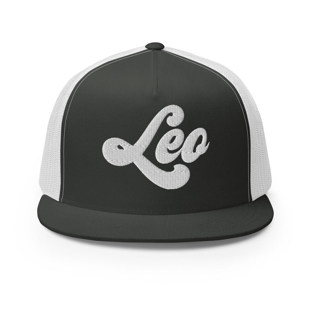 Leo Zodiac Embroidered Flat Bill Trucker Hat - Black/White Color - https://ascensionemporium.net